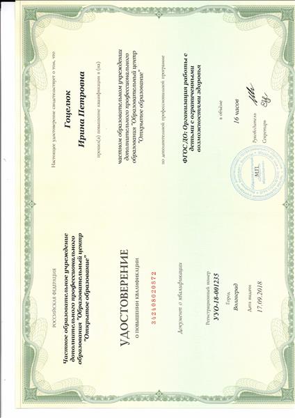 ("Образовательный центр "открытое образование". 160часов. Форма обучения: дистанционно.).